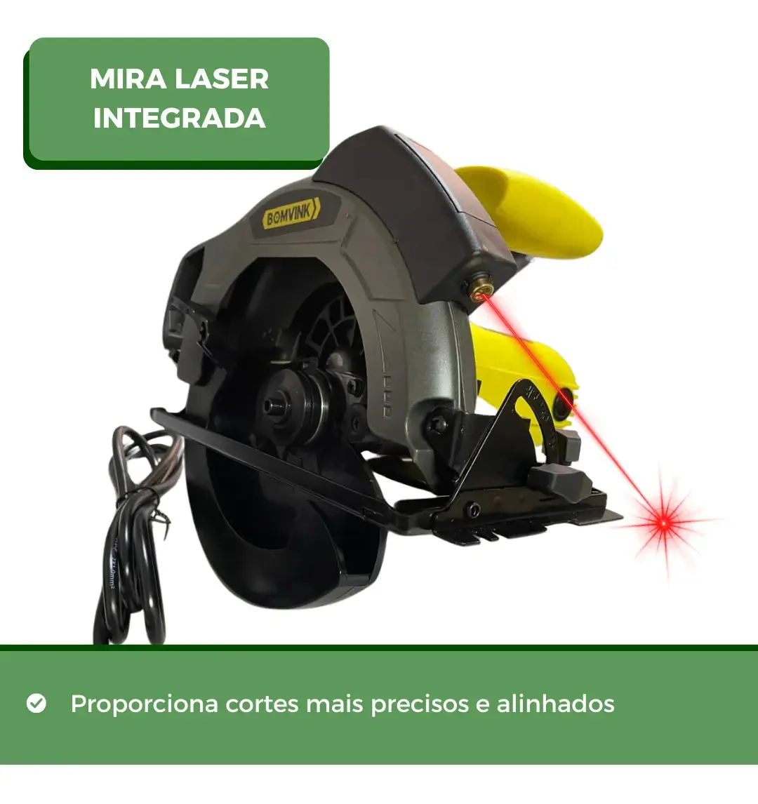 Características do Produto • Sistema de guiamento a laser para cortes extremamente precisos • 1350W de potência, ideal para uso profissional ou hobby • Design ergonômico, garantindo firmeza e conforto no manuseio • Lâmina de 185mm, permitindo cortes profundos e eficientes • Construção robusta, feita para uso intenso e longa durabilidade • Perfeita para cortes em madeira, plástico e materiais compatíveis • Alta estabilidade durante o uso, reduzindo erros e aumentando a produtividade Especificações Técnicas • Potência: 1350W • Tensão: 220V • Velocidade de rotação: 4900 RPM • Diâmetro do disco: 185mm • Profundidade de corte: o 4 cm a 45° o 8 cm a 90° • Tecnologia: Guiamento a laser • Design: Ergonômico, confortável e seguro • Cor: Amarelo e Preto Conteúdo da Caixa • 01 Serra Circular com guiamento a laser • 01 Lâmina de serra 185mm • 01 Régua guia para cortes retos • 01 Chave hexagonal para troca da lâmina • 01 Manual de instruções